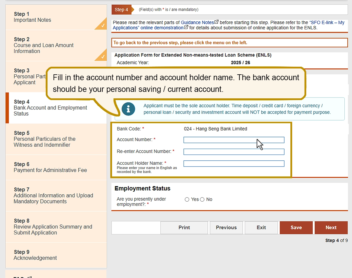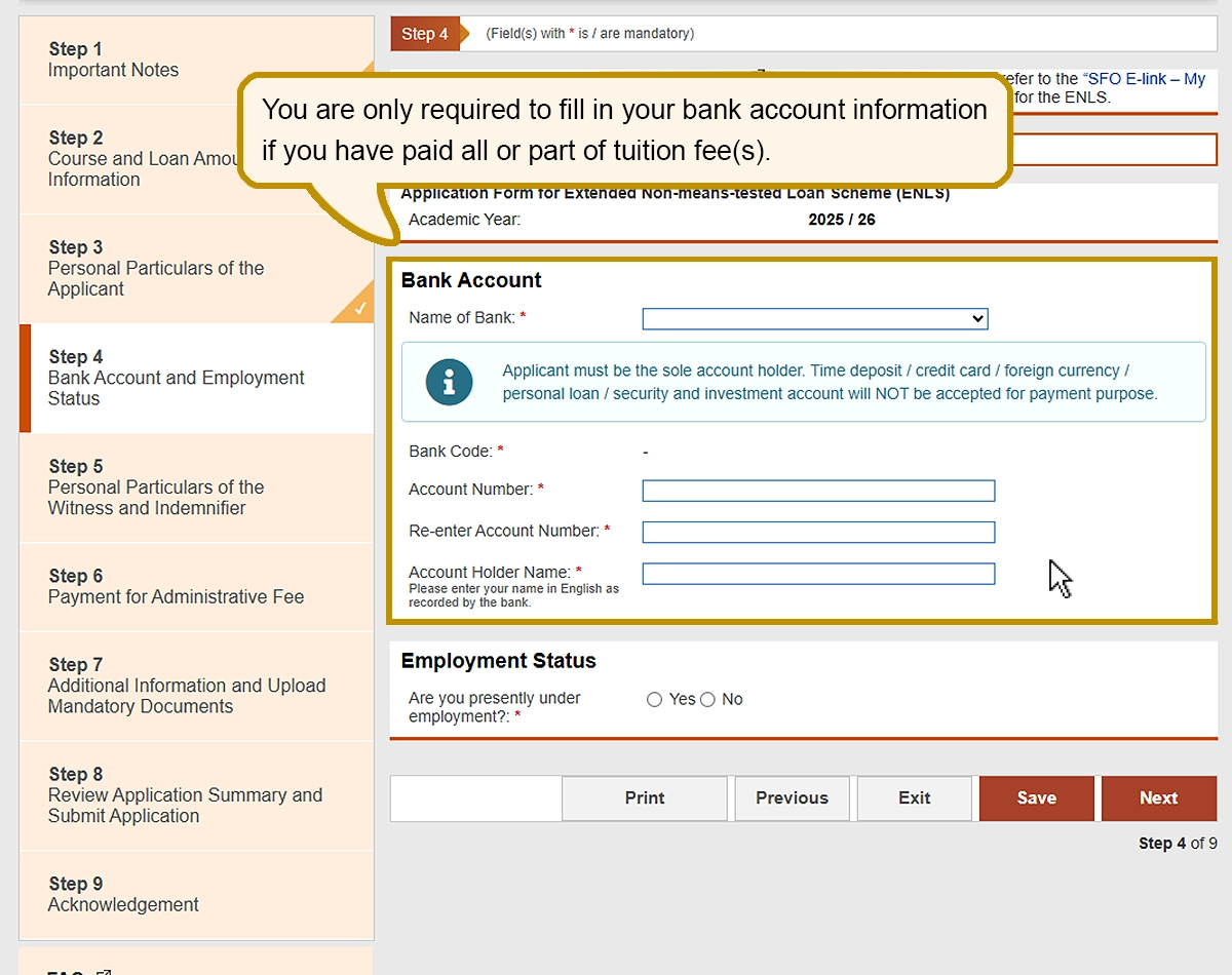 You are only required to fill in your bank account information if you have paid all or part of tuition fee(s).