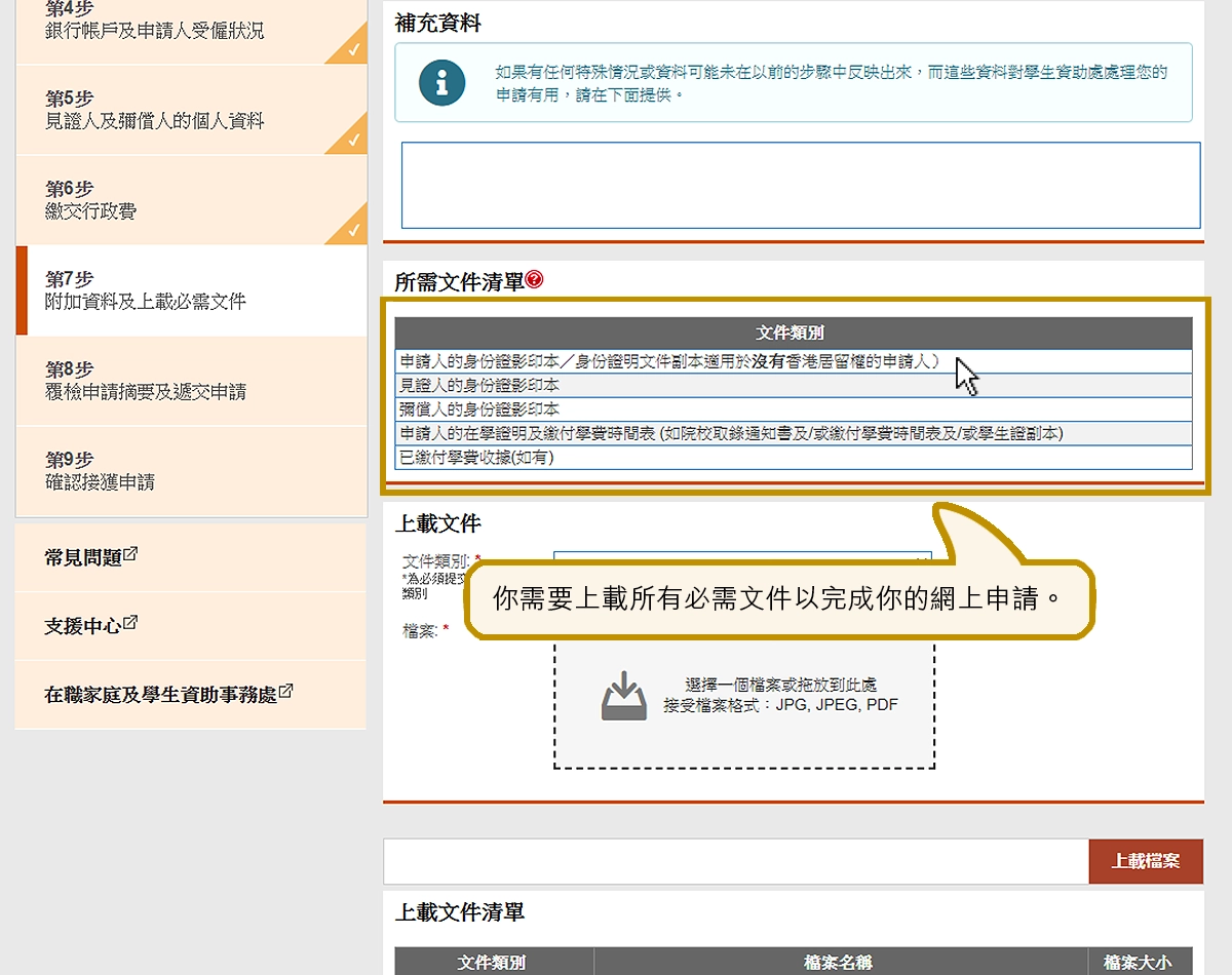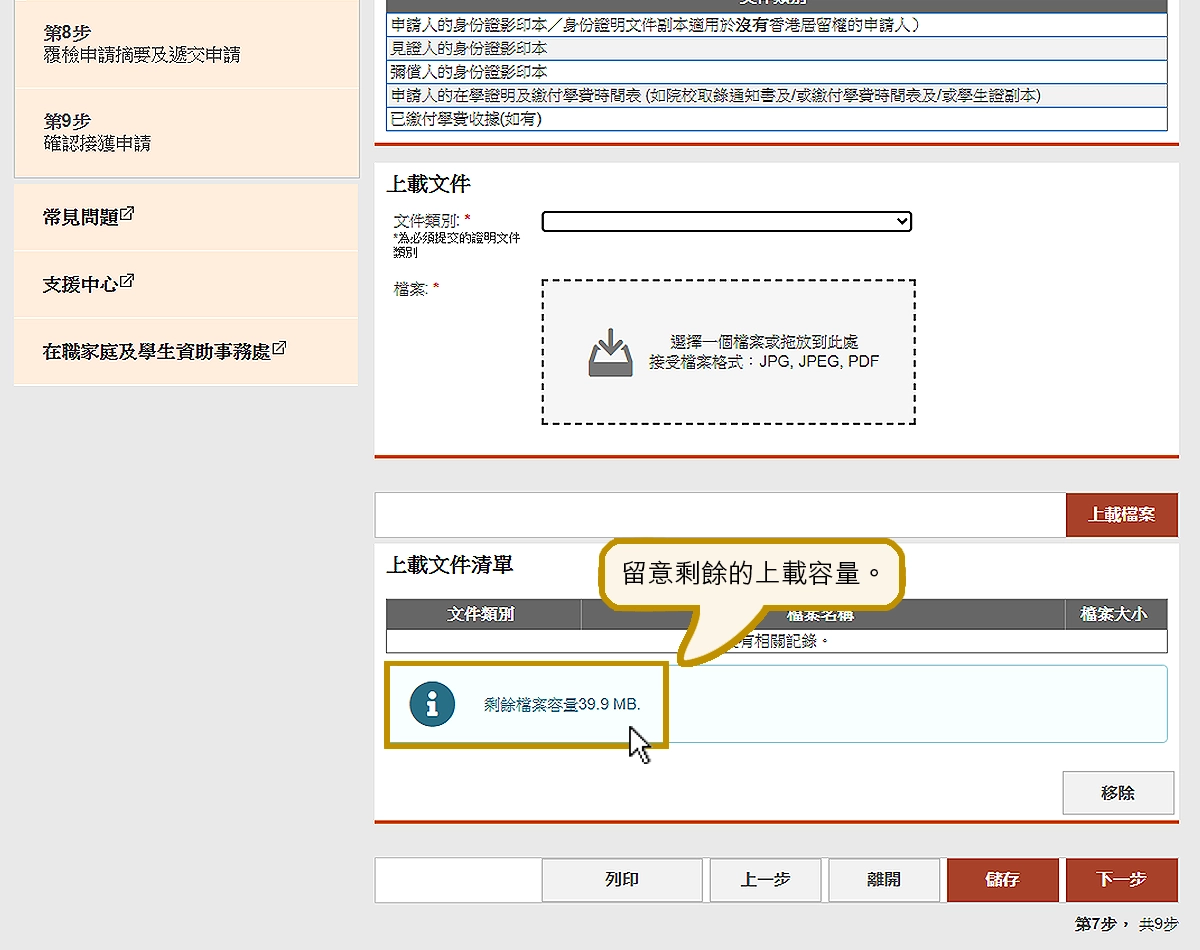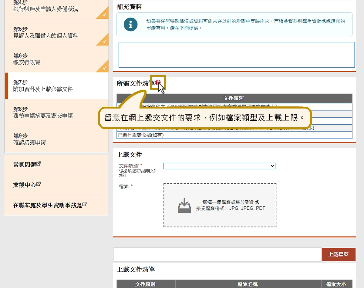 留意在網上遞交文件的要求,例如檔案類型及上載上限。